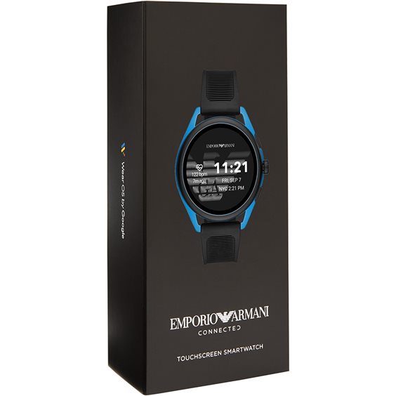 Smartwatch Display Da Uomo Di Armani. Orologio Con Cassa In Alluminio Con Finitura Opaca Di Colore Nero, Blu. Cassa Del Diametro Di 44 Mm E Spessore 12Mm. Ghiera In Alluminio Con Finitura Opaca Di Colore Nero. Cinturino In Gomma Nero Con Fibbia Ad Ardiglione. Distanza Delle Anse: 20 Mm. La Resistenza All'Acqua E' Di 3 Atm. Compabilità: Android 4.4+ (Go Edition Esclusa),Ios 10;Bluetooth 4.2+. Sistema Operativo: Wear Os By Google. Sensori: Accelerometro, Altimetro, Luce Ambientale, Giroscopio, Battito Cardiaco, Microfono. Batteria: Giornaliera (Predefinita): Modalità Con Funzionalità Complete, Durata 24 Ore. E’ Necessaria La Ricarica Ogni Notte•Estesa: Attiva Le Funzionalità Fondamentali Quando Ne Hai Bisogno, È Necessaria La Ricarica Ogni Pochi Giorni •Personalizzata: Attiva E Disattiva Le Impostazioni Di Sistema Per Creare La Tua Esperienza Personalizzata•Solo : Ottieni Qualche Ora Un Più Quando La Batteria È Quasi Scarica Oppure Prolunga L’Autonomia Di Settimane Quando La Batteria È Completamente Carica. Memoria: 1Gb E Storage E Gb. Diametro Area Attiva 1.28" / 416 X 416 / 328Ppi Diametro Area Attiva 1.28" / 416 X 416 / 328Ppi. Accessori Inclusi: Diametro Area Attiva 1.28" / 416 X 416 / 328Ppi. Accessori Inclusi: Caricabatterie Magnetico. Wear Os By Google, Google Assistant, Touchscreen, Regolazione Automatica Dell'Ora, Notifiche, Quadranti A Schermo Pieno, Personalizzazione Quadranti, Quadranti Con Complicazioni, Sincronizzazione Wifi, Google Play Store, Scarica App Direttamente Nel Tuo Smartwatch, Google Fit, Comandi Vocali, Microfono + Speaker, Micro App, Cinturini O Bracciali Intercambiabili, Sveglia, Controllo Remoto Musica, Nfc, Gps Integrato, Swimproof, Carica Rapida, Trova Il Mio Telefono*, Rispondi A Messaggi Email E A Telefonate*, Navigazione Con Google Maps* - *Solo Per Android, Miglioramento Della Batteria Grazie Alla Possibilita' Di Scegliere Tra Le Modalita' Giornaliera (Predefinita) / Estesa / Personalizzata / Solo : Wear Os By Google, Google Assistant, Touchscreen, Regolazione Automatica Dell'Ora, Notifiche, Quadranti A Schermo Pieno, Personalizzazione Quadranti, Quadranti Con Complicazioni, Sincronizzazione Wifi, Google Play Store, Scarica App Direttamente Nel Tuo Smartwatch, Google Fit, Comandi Vocali, Microfono + Speaker, Micro App, Cinturini O Bracciali Intercambiabili, Sveglia, Controllo Remoto Musica, Nfc, Gps Integrato, Swimproof, Carica Rapida, Trova Il Mio Telefono*, Rispondi A Messaggi Email E A Telefonate*, Navigazione Con Google Maps* - *Solo Per Android, Miglioramento Della Batteria Grazie Alla Possibilita' Di Scegliere Tra Le Modalita' Giornaliera (Predefinita) / Estesa / Personalizzata / Solo . La Referenza È Art5024 Questo Smartwatch verrà spedito con Scatola Originale Emporio Armani