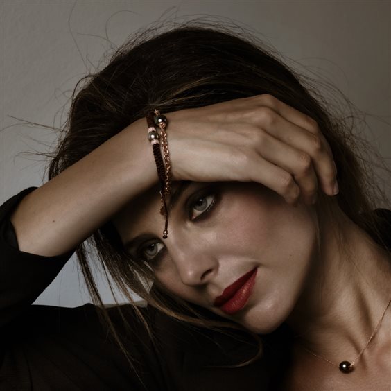 Bracciale cordino nero con perla TH 9/10mm , AG925 rosa e zirconi 44866