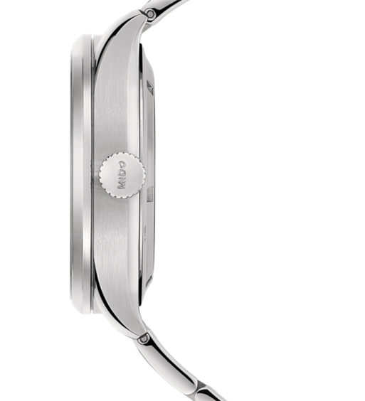 Movimento Automatico Mido (base ETA C07.611 / 2824-2) CASSA con Fondello a vista VETRO : Vetro zaffiro con trattamento antiriflesso su entrambi i lati RISERVA DI CARICA : 80 ore FUNZIONI : solo tempo, Dual time, Datario (ore 4) Certificato di garanzia con validità di 24 mesi